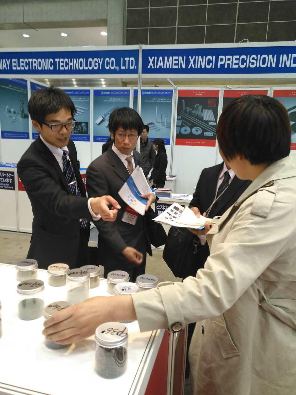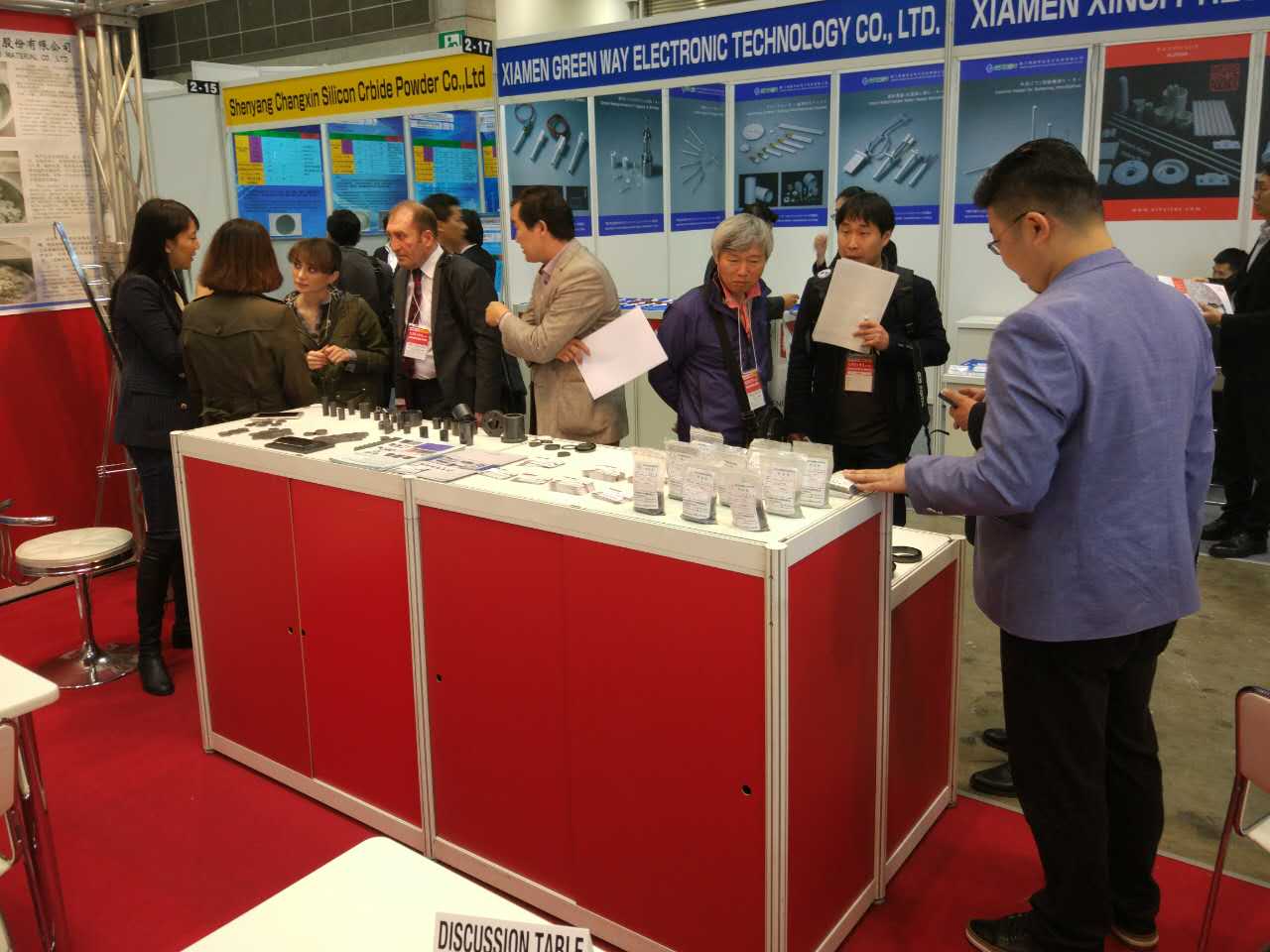 四月三號從金蒙新材料出發(fā),昨天抵達(dá)日本布置展覽會場,今天在日本的陶瓷展正式拉開了序幕。我們公司帶著我們生產(chǎn)的碳化硅樣品參展。其中有碳化硅粒度砂,碳化硅微粉。這次展會吸引了很多企業(yè)參加,我們也投入了很大的熱情。